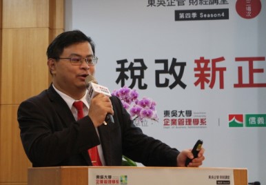 企業管理學系於2019年4月24日舉辦第四季「東吳企管財經講堂」,第二場次主題為《稅改新正義?受薪階級獨扛租稅負擔?》由東吳大學法商講座教授陳冲擔任主持人,邀請政治大學財政系名譽教授曾巨威、中正大學財經法律學系教授盛子龍、明達會計師事務所鄭宏輝會計師及東吳大學企管系兼任教授張淵智,在納稅季節前夕,共同探討當前稅改制度對納稅義務人的衝擊與負擔。