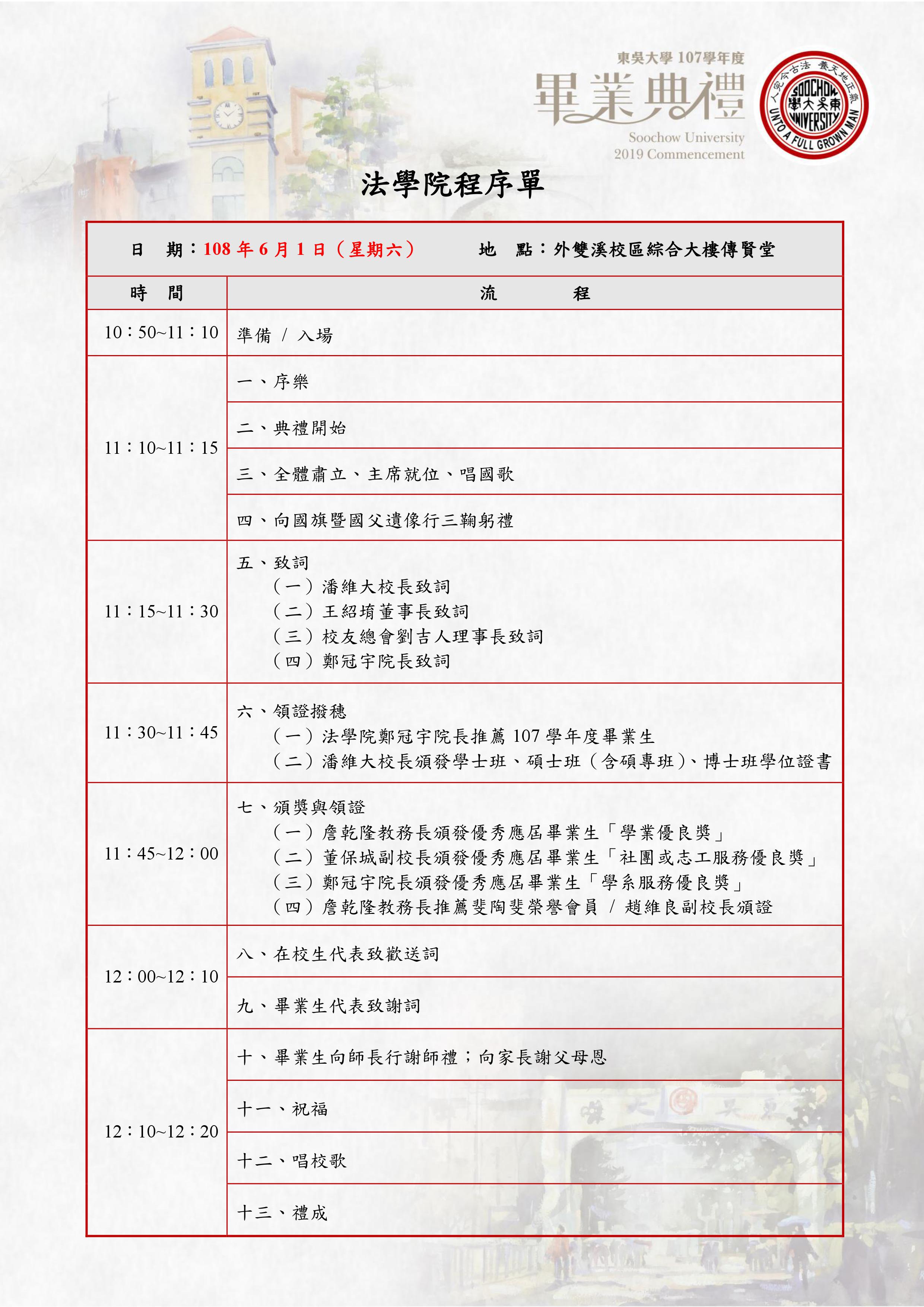 【各學院畢業典禮程序表】