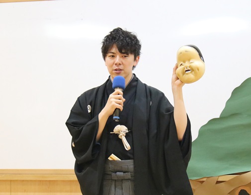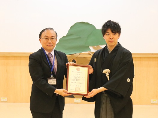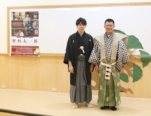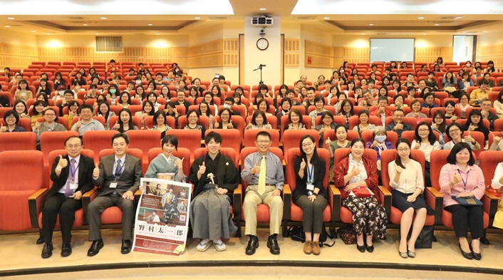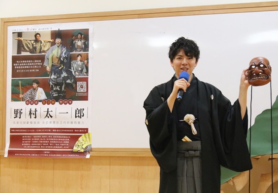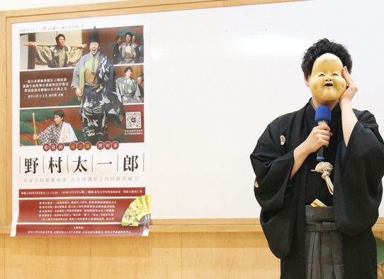 本校日本語文學系、通識教育中心與日本臺灣交流協會邀請「能樂師狂言方和泉流」野村太一郎先生(有限會社コースケ(kosuke)事務所),2019年5月29日下午於外雙溪校區第一教研大樓普仁堂,精闢講解日本傳統藝能狂言劇的歷史、發展,展演實際演出時使用的道具與舞台服飾,並演出能・狂言劇的精采片段。