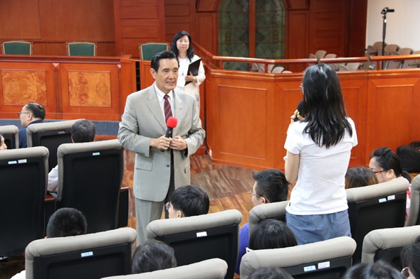 最後的互動問答環節中,學生們也踴躍提問,如增訂《兩岸人民關係條例》第5條之3條文、六四天安門運動、2020年總統大選、美國之於兩岸的關係等,馬教授皆給予詳細回答;馬教授最後提到國際法的基本概念就是「以和平方式解決爭端」,並再次重申「戰爭沒有贏家,和平沒有輸家」的想法。