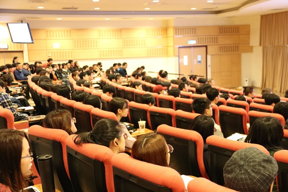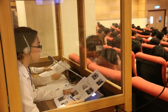 107級日文系口譯成果展,5月8日在外雙溪校區普仁堂舉行,學生們在講師演講的同時,進行「中譯日」、「日譯中」同步口譯,充分發揮一學期所學的口譯技巧。上半場邀請專業中日文主持人劉宇彤小姐,分享「目標!最強打工仔」中日文雙語主持的心路歷程;下半場則由台灣伊都錦股份有限公司多田良二董事長分享「台灣與日本的時尚差異」,談公司的經營理念。