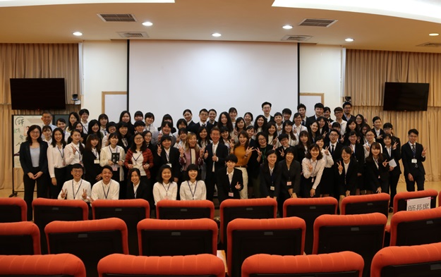 多田良二董事長首先介紹了台灣伊都錦股份有限公司的背景與主要業務,以「追求流行的浪漫時尚」為努力方向,除了注重服飾品質、尊重設計師的原創之外,也藉由工廠以及店面員工雙向研修、人才培育、學生實習,及設計師前往工廠交流、結合公益活動推展服飾業等方式提升員工向心力。他接著分享台日間時尚品味的異同,如色彩的喜好、褲子與裙子的關係、鞋子設計等,文化背景的差異,會導致民眾在時尚選擇上產生不同的結果,因此台灣伊都錦也努力朝向在地化發展。最後他勉勵學生精進專業能力,並期待能在職涯中充分發揮。