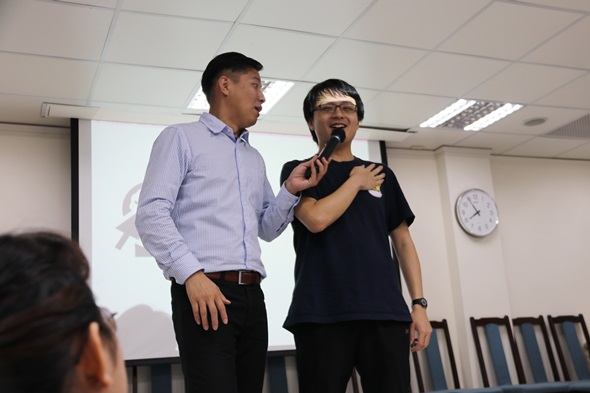 第二個團康遊戲是要與別人「打招呼」,每個人一開始都會猶豫,是該主動還是被動?優質的互動模式應該在於每個人都是主動的那個,而非被動式的等待他人前來互動。「打招呼」就是人際關係破冰的第一步,也是建立溝通橋梁的第一步,胡瑋翰強調,若能減少一來一往的溝通成本,相對地就能提升職場競爭力。