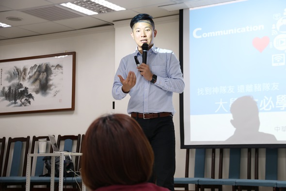 本校群美中心舉辦服務學習營講座,邀請中華康輔教育推廣協會資深講師胡瑋翰講授「大學生必要的溝通技巧」,5月15日晚間在外雙溪校區G101會議室熱烈展開。講座結合團康活動,不僅炒熱現場氣氛,也使參與者對人際互動有更深刻的認識。