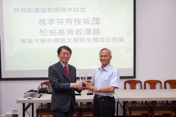 英文系林茂松講座教授為國內外英文專業教學領域德高望重之學者,2009年至本校英文系服務。任職本校期間,連續10年獲得校長與教務長教學優良感謝狀,於各級會議提供寶貴經驗,協助推動學系實習制度與課程、比較文學碩士班轉型為翻譯碩士班,以及促成翻譯碩士班與西雪梨大學雙聯學制。2015年至2018年擔任外語學院院長期間,在校方支持下推動新生英文能力測驗,提出共同英文課程改革提升計畫,以符合產業、學校、學生、家長之期待。2018年獲禮聘為本院謝東閔人文社會講座教授,外語學院特致贈「桃李芬芳枝葉茂/松柏長青教澤銘」水晶紀念講座,感謝林老師嘉惠本校莘莘學子。
