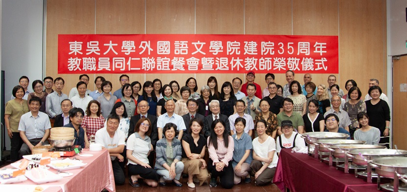 本校外國語文學院35歲了!介於「而立」與「不惑」的中心點,且值此高教環境變化難測的時節,為感謝院內教職員多年來的奉獻與支持,特訂於2019年6月12日,於外雙溪校區戴氏基金會會議室舉辦「建院35周年教職員同仁聯誼餐會暨退休教師榮敬儀式」,餐會計有75位教職員工參與,場面溫馨感人,充分展現外語學院全院同仁團結一致的向心力,學院也致贈每位出席的教職員一只福袋,讓大家將滿滿的福氣一起帶走。