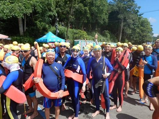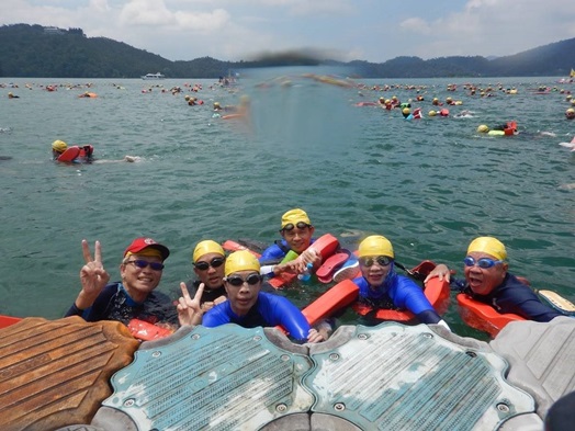 校友不論年齡性別,皆踴躍參與此次活動,母校董保城副校長、王淑芳社資長與校友總會劉詩聖顧問也積極響應,與校友們一同挑戰「勇」渡日月潭。洪長岸學長(法律系59級)今年已經74歲,正好在泳渡日月潭年齡限制的前一年參與此活動(泳渡日月潭年齡限制8歲至75歲),身為校友社團「健康樂活社」的社長,洪學長不僅身體力行,更號召校友們一同下水,而他更是從5月開始的每一次晨泳訓練都不曾缺席。