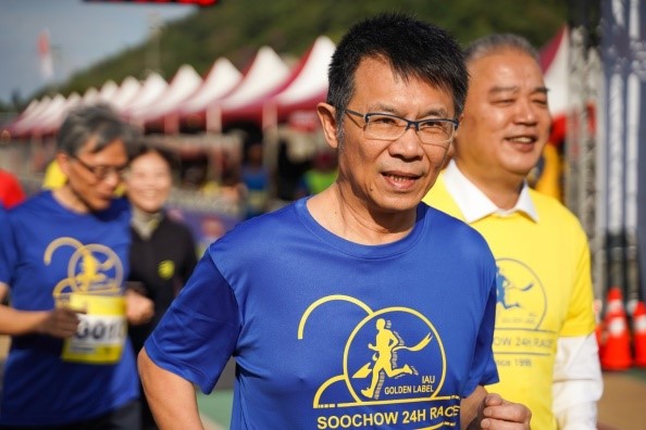 國際超馬比賽期間,適逢東吳校慶倒數破百!在12月14日早上開幕儀式上,東吳大學及蘇州大學共同迎接建校120年校慶啟動儀式,兩校校旗一同進場,見證兩校120年來在教育及體育活動上的卓越貢獻與歷史里程碑。開幕典禮邀請空軍樂隊和景美女中儀隊表演,整齊劃一的動作,令現場師生驚艷,也盛大揭開賽事序幕,與全體選手共同再創東吳超馬的金牌賽事榮耀。