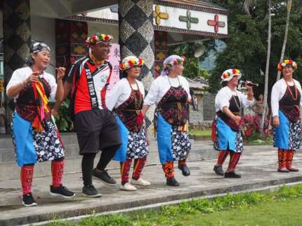 騎乘途中,百位師生還一同參訪知本卡地布部落,體驗卑南族文化。一進入部落,受到熱烈歡迎,由原住民帶來熱情的迎賓舞,象徵祈福及掃除厄運,祝福同學接下來的騎乘一路順風。