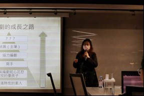 此外,她也分享許多劇本創作的小秘訣,以及介紹劇組的生態與組成。她說,創意是來自於大量的閱讀,鼓勵同學們可以多閱讀,也提到創作劇本時要有一個核心的概念,才能夠創作出好作品。