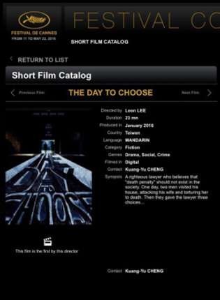 從一月的金球獎到五月的金棕櫚獎,每年春季的空氣中都彌漫著濃厚的影展氣息。2016年3月8日,本校華語教學中心副主任鄭匡宇監製、德文系同學李永為導演的電影《審判》(The Day to Choose)入選第69屆坎城影展(Festival de Cannes)觀摩單元之短片角落(Short Film Corner),而此片同樣入圍了第13屆世界民族電影節獎(The Universe Multicultural Film Festival)。接踵而來的好消息令這個三月特別春光明媚,當坎城影展的名號平地驚雷之時,作為監製的鄭匡宇老師和導演李永為同學他們又是作何感想呢?和先後在TVBS新聞與校園記者的訪問裡闡述了自己的理念。