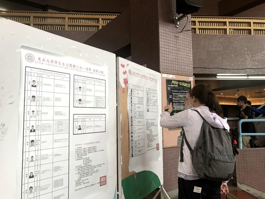 本次學生自治團體選舉,中文系、歷史系、政治系、社會系、社工系、英文系、日文系、德文系、微生物系、心理系、巨量學院、法律系、會計系、國貿系及資管系等15個學系,均已順利選舉出系學生會正副會長,各系系學生會將另行公告選舉結果。