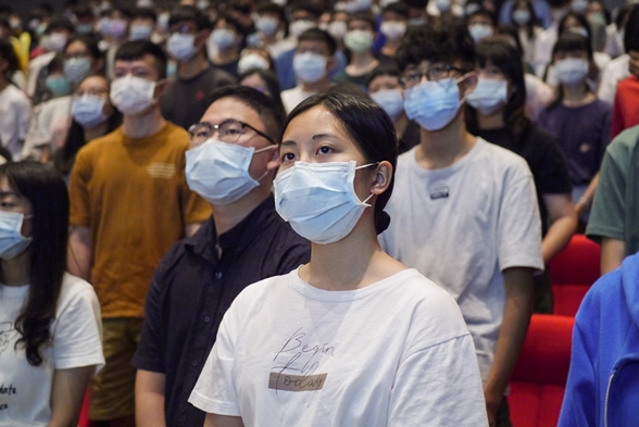 藉由觀賞學校簡介、校歌教唱、認識師長、校牧祝禱及轉動巨型氣球傳承校訓等活動,讓大一新生歡呼聲和笑聲high翻傳賢堂及松怡廳,典禮在新生們共同完成校訓大球拼推及悠揚的校歌聲中畫下句點。
