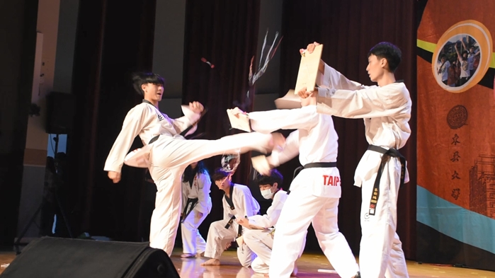 跆拳道與柔道社更為大家帶來另外一種衝擊,整段演出台下驚呼聲此起彼落,清脆的瓦片聲破裂劃過寧靜夜空,行雲流水的動作卻不失力度,所有人的注意力都被緊緊的抓住,心中的感嘆也不自覺脫口而出,為晚上的演出更增添精彩之處。而表演中的串場主持群更是社團之夜的一大亮點,使用詼諧有趣的對話抓住新生們的注意力,一方面替表演者爭取準備時間,另一方面也將換場的尷尬氣氛瞬間活絡起來,可以說是相當賣力,新生們也給予高度肯定以及支持,能擁有一個美好夜晚,主持群功不可沒。