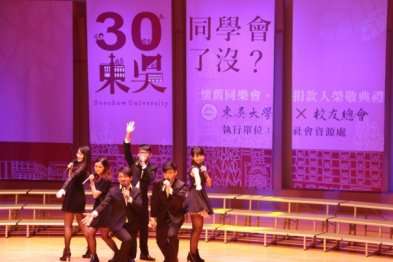 社資處為了校慶的籌備,召集了30志工一同規劃校友系列活動,除了在第二教研大樓一樓有靜態照片展及校慶紀念品的販售外,上午於松怡廳更舉辦了30東吳懷舊同樂會,從開場的Acapella,將當年的流行經典重新再現,讓所有人沉浸在歲月的歌聲中,接續著的是由中文系的謝翰哲與鄭訓典兩位同學所組成的「翰典二人轉」,將校友當年的趣聞融入表演當中,台上逗趣的互動將現場的氣氛帶到最高點,掌聲與笑聲都隨著翰典的詼諧對答接連不息。