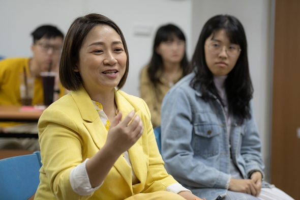 黃小胖老師更進一步傳授主持秘訣,主持不等於講笑話、搞笑,而是把整個活動流程掌握在手裡,過程中能夠聽得到自己的聲音,言之有物、不空泛才能來得及修正,引領受訪者進入自己的語境裡面。在講座的最後,黃小胖老師送給大家她的人生經驗談,「刻意的練習,練習能成就完美。趁大學的四年裡,有機會就上台發表,多嘗試、多練習,把錯誤都留在學校裡,在未來的職業生涯裡,便能有個對表達不費吹灰之力的自己。」提起勇氣,你準備好了嗎?