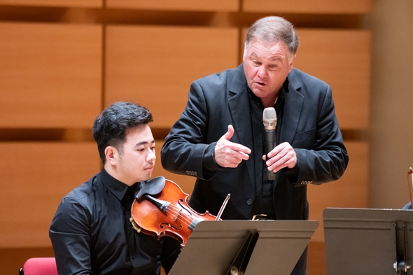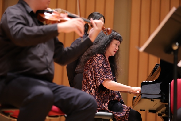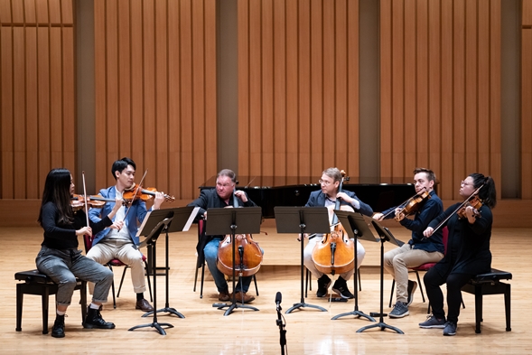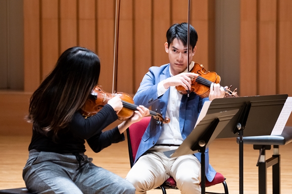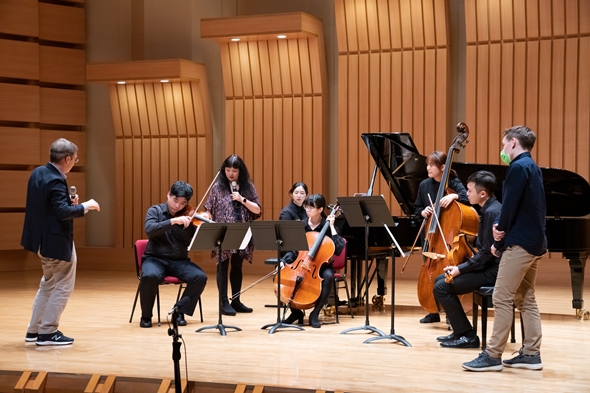 本校音樂系主辦的「2020國際大師班在東吳」系列活動,於109年10月至12月期間展開,邀請多位國際傑出音樂家蒞校指導,希望藉由一系列大師班、講座、工作坊等,培養學生的國際視野及與國際音樂家交流之機會。12月9日,由曾獲Musical America「年度音樂家」殊榮的紐約林肯中心室內樂協會藝術總監,同時也是本校音樂系70級校友的吳菡(Wu Han)領軍,率小提琴家林品任(Richard Lin)、克里斯汀.李(Kristin Lee)、大提琴家德米特里.阿托品(Dmitri Atapine)與基斯.羅賓遜(Keith Robinson)、中提琴家尤拉.李(Yura Lee)與馬修.李普曼(Matthew Lipman),至外雙溪校區松怡廳進行演出,並與學生暢談學習音樂的心路歷程。