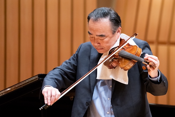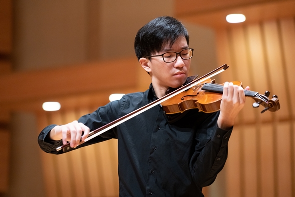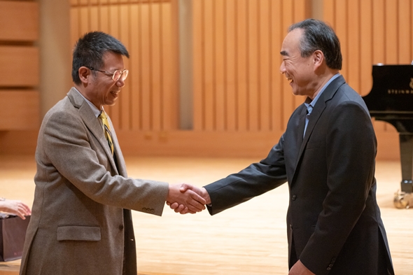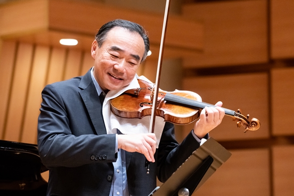 學生在台上全神貫注的演奏音樂,音樂家在台下全心全意的側耳傾聽,這並不是平時的音樂系演奏會,而是經過學系甄選,才能夠上台接受國際知名音樂家指導的「大師班」課程。本校音樂系主辦的「2020國際大師班在東吳」系列活動,於109年10月至12月期間展開。12月16日邀請到曾獲《音樂美國》選為年度器樂演奏家,同時也曾與各國著名交響樂團合作演出、名聞國際的台裔美籍小提琴家林昭亮老師,至外雙溪校區松怡廳進行大師班授課。