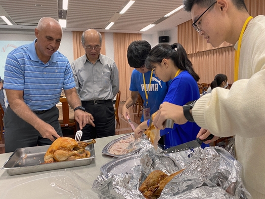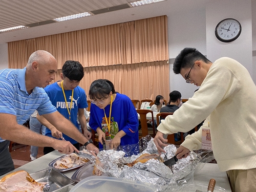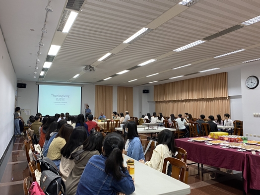 感恩節餐敘活動,本系準備了豐盛餐點,有道地的美式烤火雞、洋芋沙拉,蘋果派、雞翅與焗烤義大利麵等美式食物,讓師生品嚐傳統的感恩節餐點。活動還邀請孫克強教授說明感恩節的歷史意義,讓學生可以更加了解英美文化傳統中的重要慶典與由來。