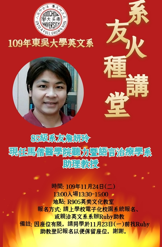 英文系火種講堂將繼續邀請優秀系友返校講述職涯發展經驗,歡迎正在思考未來職涯方向的同學們與畢業系友參加。
