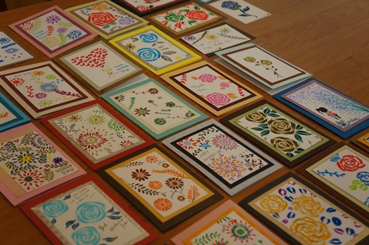 在卡片製作過程中,老師帶領同學們運用類水彩筆和及適當的力度,來畫出水滴形狀的花瓣。重壓、輕提、重壓、輕提…一直重覆動作,一朵充滿活力的花即出現在眼前,老師稱之為「點點生花」。另外,因應五月母親節,蔡老師還教同學們如何畫出美麗的玫瑰花,在老師示範後,讓同學們十分期待動手試畫出自己的作品,在輕重輕的口訣下畫出C字,一片片的玫瑰花瓣便出現在畫紙上。最後,老師也邀請同學們把卡片放置在桌上,一張張有趣的卡片,不但傳達出每位同學對藝術的理解,也顯現出東吳同學們的畫技不凡!