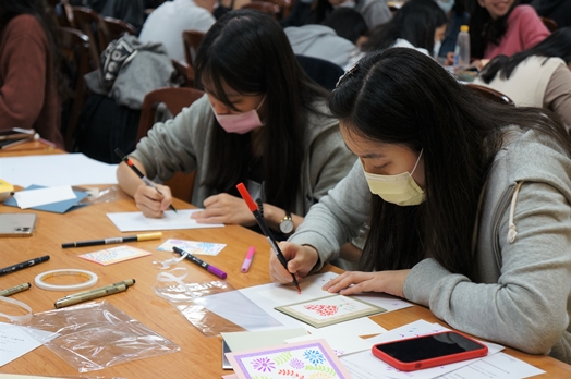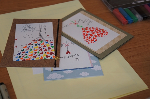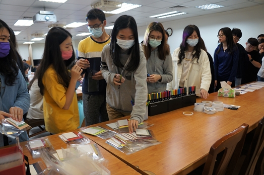 「同學們,今天來只是想做手繪吧?可是基本上,我會把它延伸成藝術陪伴。」蔡佳玲老師與同學分享。有時候我們想將卡片送給重視的人,同時也是希望卡片能代替自己來陪伴對方,而我們在創作的同時也是陪伴了自己。在製作過程中會靜下心來,慢慢找回自己心靈的力量,一筆一畫將白紙化成藝術,把愛化為無限的可能。