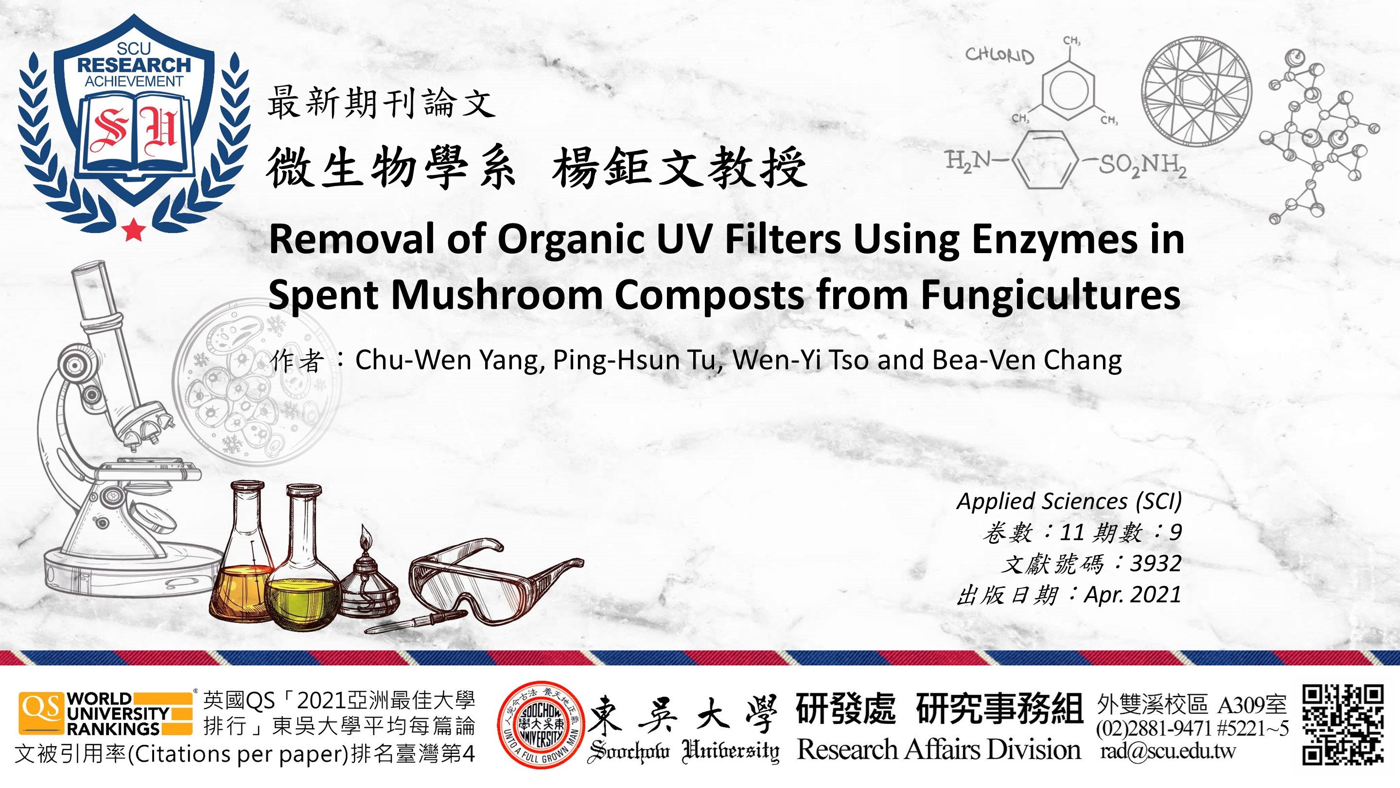 研究事務組提醒:教師如有最新發表於AHCI、SSCI、SCI、EI、TSSCI、THCI、「東吳大學外語學門獎勵名單」之期刊論文,歡迎將相關資訊e-mail至rad@scu.edu.tw,研究發展處將會公告於校園頭條,以廣交流。