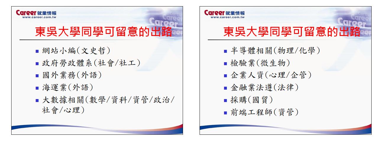 受疫情影響,未來許多產業可能產生重大轉變,以國外麥當勞為例,歐美部分麥當勞已轉成自動機台點餐,以落實零接觸;教育類型如補習班,則多改成線上授課;或是店家變身直播主販賣東西。因此,老師提醒同學們可留意的未來出路,以中文系學生來說,網站小編不失為新選擇,然小編除需出色的文筆外,也需具備對時事趨勢掌握、社群經營技巧和美術編排等能力;對於外語系學生,除建議擁有外語條件外,還需有商管相關能力;其他像是數學、資管或巨量資料科系,就現階段而言,行銷公司、廣告企業或電視公司等皆為不錯的選擇。加上,近年來台商因疫情的影響而有回流的現象,如伺服器、網通零件組或者智慧機械產業等,亦可列入考量。
