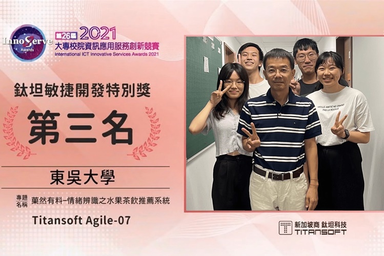 「第二十六屆全國大專校院資訊應用服務創新競賽」由經濟部工業局、教育部資科司及中華民國資訊管理學會共同主辦,是全台最大規模資訊創新競賽,今年考量疫情,首次以線上競賽方式舉行,110年11月13日舉行線上頒獎典禮,計有110所學校、1,043隊次報名參與。本校資管系師生從競爭激烈的賽事脫穎而出,由郭育政、黃心怡、劉譯閎、朱蕙君、連志誠等5位老師指導,共計7組專題、25位學生入圍決賽,2組榮獲第三名、1組榮獲佳作,成績斐然。入圍決賽及獲獎名單如下: