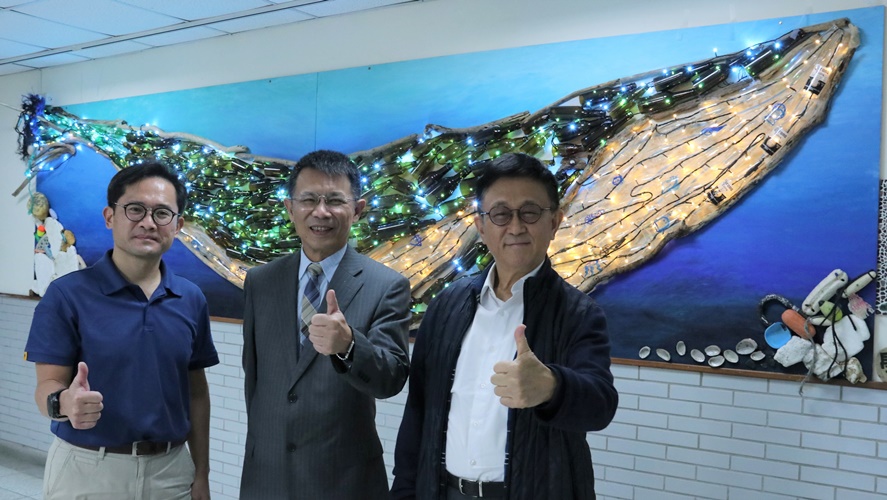 拾來的海廢,以鯨魚為意象進行創作,命名為《永續之光》。鯨魚一生能吸收大量二氧化碳,如同泅游在海中的大樹,其為環境奉獻之精神,就如同本校學務處的成立宗旨,無論是德育中心、學生住宿中心、群美中心、健諮中心、軍訓室或是原資中心,無一不是為了本校學生權利而運作,期透過本校各單位齊心合力,使學生能正向樂觀地成長,充實且積極地度過大學生涯。