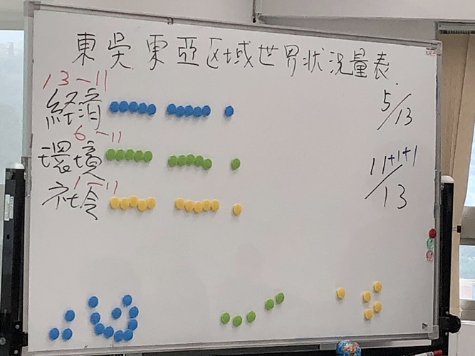 羅曉勤老師於活動一開始,先向大家介紹聯合國永續發展的17項目標(SDGs)意涵及SDGs桌遊的遊戲規則後,即以「讓我們共創2030年可能的東亞區域世界樣貌」為目標,在場的成員分組後,分別交付不同的人生目標和任務,並以手上相同的時間卡及金錢卡作為資源之用,玩家利用資源完成專案卡以獲得更多的時間卡、金錢卡或者原則卡,在目標導向下,讓成員更了解永續發展目標的內容。 最後,在大家共同努力下,各組善用自己的資源、策略來共創未來家園。