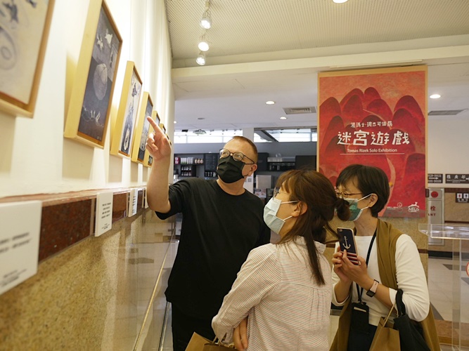 另一場拓展國際視野的藝術活動為捷克知名畫家湯瑪士•瑞杰可(Tomáš Řízek)個人畫展—迷宮遊戲,於5月9日至20日在本校第二教研大樓一樓展出,他曾繪製大家耳熟能詳的《阿里巴巴與四十大盜》和《格林童話》,創作至今,已累積多達70餘本的插畫作品,並成立出版社,為台捷雙邊兒童繪本及翻譯文學貢獻諸多心力,這次在東吳校園展出最新作品《小黃傘》和《花束集:捷克民族傳說集》,讓師生們用藝術之眼,體會捷克文化的特殊魅力。