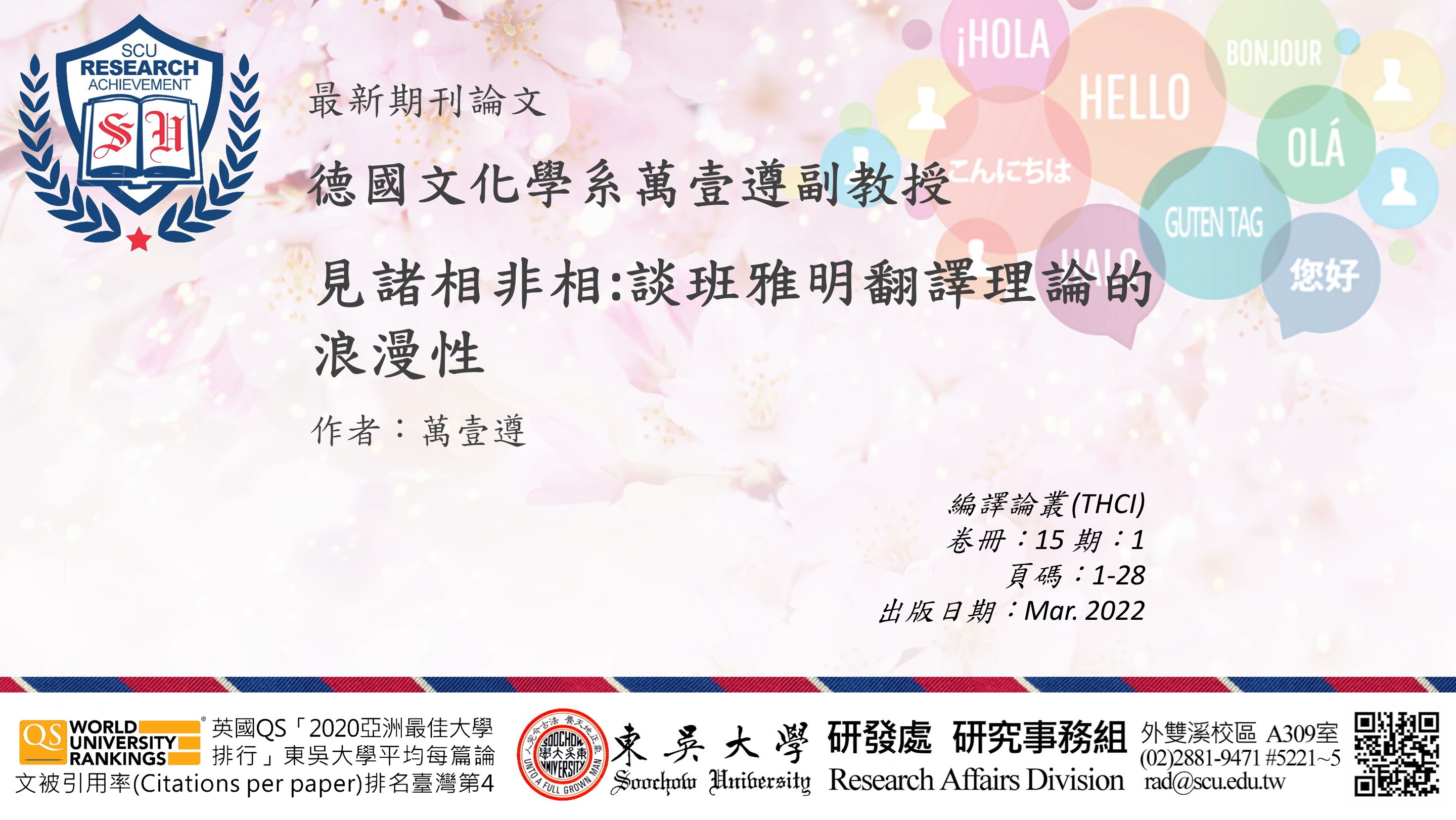 德國文化學系萬壹遵副教授發表最新期刊論文