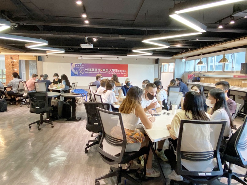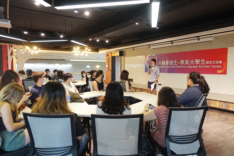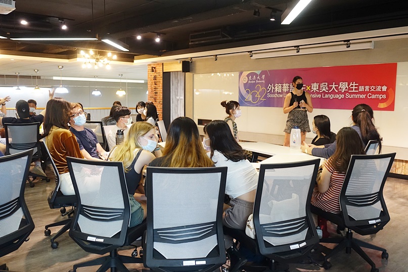 今(2022)年暑假最特別的語言交流活動於7月15日下午在東吳大學城中校區舉行。本次的交流活動由華語教學中心與商學院共同舉辦。55位東吳大學密集英語營(Intensive English Camp)的同學與26位來自世界各地的本校華語生,用英語與華語展開了2個多小時的語言交換活動。