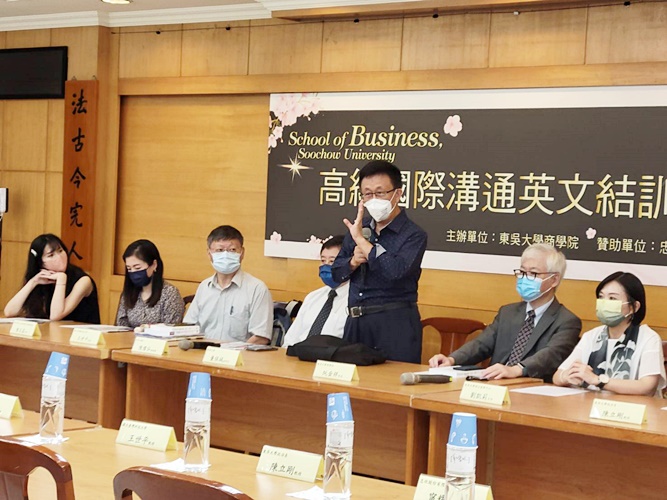為驗收修課學生英文口說能力,本學院於7月29日舉辦「高級國際溝通英文結訓典禮暨簡報競賽」。結訓當日,董保城副校長特以說故事的方式輕鬆開場,勉勵學生儲備多項專業能力;商學院阮金祥院長亦指出,課程雖耗費資源相較一般課程高出許多,但「只要對學生有利,商學院將持續並努力地去做」,期待未來能夠藉由學生同儕間的口碑行銷,使受益群擴增。