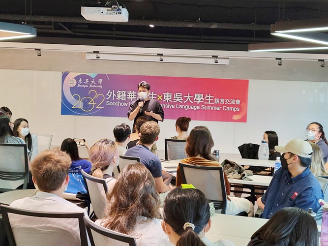今(111)年度因新冠疫情持續延燒,暑期多數課程採線上方式授課。惟在綜合評估學生健康安全及學習成效,最終該課程採用「線上+實體」的「混成式教學」方式進行。為確保大家均健康返校並安心教(學)習,學校亦於開課前提供快篩試劑予全體師生,更叮囑相關單位於課程進行期間落實防疫清消工作。值得一提的是,本次課程開辦期間,與華語教學中心「Project Go計畫」時程契合,故特於7月15日攜手辦理「外籍華語生X東吳大學生語言交流會」。邀請來自美國、匈牙利、德國、捷克等國之26位外籍華語生與55位東吳大學生進行中、英文語言交換,藉由專題討論與餐敘,使學生視野跨界提升,而在交流會後同學仍持續保持聯繫。