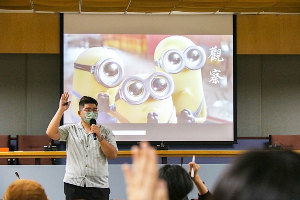 你曾因為朋友聚會發文,卻發現自己沒有被邀約而感到悶悶不樂嗎?本次講座心理師透過「網路成癮」、「人際焦慮」、「自我否定」及「拖延」四大主題,與同學一同探討缺少歸屬感及連結的感受。林廉峻心理師提到生活中人們缺少了「覺察」,因此常陷入在憂鬱的情緒中久久無法脫身。為了讓同學能深刻體驗「覺察」的過程,講師讓同學到台前選擇代表自我心情寫照的一張牌,接著閉上眼睛在心裡想著自己的容貌,當多數人負面地想像自己的容貌,講師進一步提到自我否定的情況,讓觀眾得以省思。