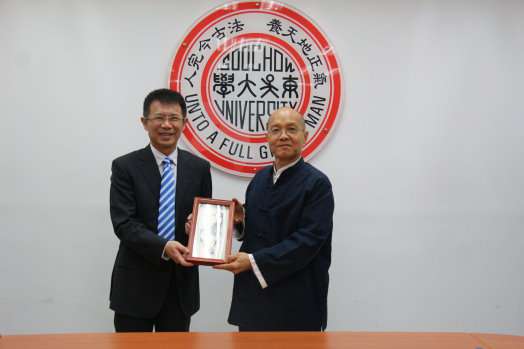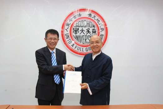 本校與美國教育測驗社(ETS)臺灣區總代理忠欣股份有限公司攜手執行「提升學生英語文能力產學合作計畫」,簽約儀式於105年04月29日(五)上午10時在東吳大學雙溪校區舉行,由本校潘維大校長與忠欣股份有限公司邵作俊董事長共同簽署。本次之合作計畫將語言管理導入英語文教學,由學校提撥經費讓學生參加多益測驗,掌握學生學習狀況,作為診斷教學成效與設計課程內容之參考。
