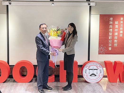 東吳大學名師匯集,今年度又新增一名生力軍,本校敦聘第三屆傑出校友,現任法務部部長蔡清祥先生為東吳法商講座教授,111年10月19日於城中校區游藝廣場舉行禮聘典禮暨歡迎茶會;潘維大校長、董保城副校長暨本校一級主管、院系師生蒞臨觀禮。