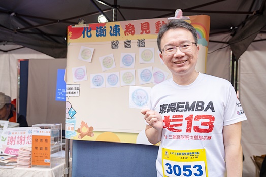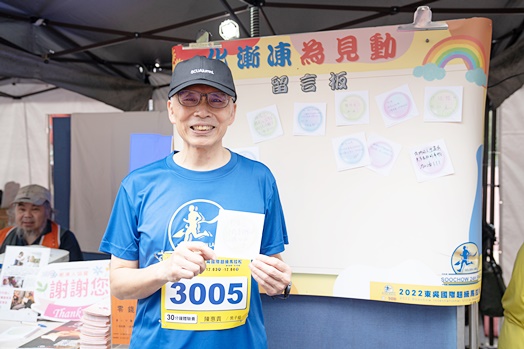 漸凍人在人生的漫長跑道上,以永不放棄的精神,與漸凍共存,創造出自我價值!「2022東吳國際超級馬拉松」結合慈善公益,與中華漸凍症協會合作義賣募款擺台,讓現場參與者除了健康賽跑,也為社會盡一份心力。東森氣象王淑麗主播、東吳大學唐松章董事、潘維大校長及EMBA服務與成長協會黃彥瑋理事長等人皆前來攤位送上鼓勵及祝福。