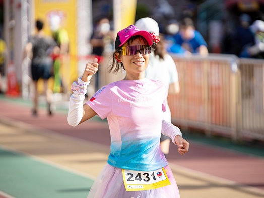 賽場上,不只選手在獨自奮鬥,而是跑道將眾人聯繫在一起,相互影響、鼓勵著彼此,傳達出正向互助的超馬精神。創下台灣超馬女子新紀錄的選手林冠汝,身穿一襲七彩澎澎裙是賽場上的「嬌」點,對於本次打破個人紀錄,並成為台灣女子組冠軍,她感到不可思議!「到最後我都跑得歪七扭八,但看到很佩服的日本選手們也是這個狀況,代表他們也是拚盡全力想要突破,不會因為實力好而有所鬆懈,所以促使我也要力竭力完成賽事。」她認真地說道。