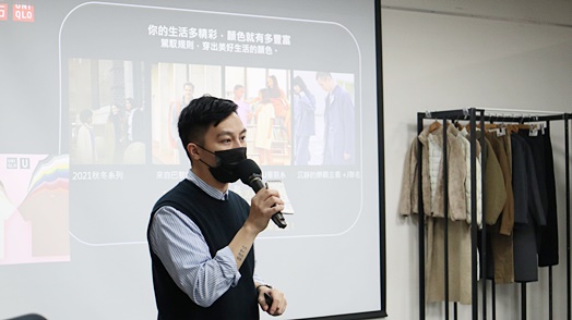 「衣服不能駕馭你,你才是重點!」衣穿人?還是人穿衣?曾昇甫首先拋出問題,讓同學思考在這個競爭強勁的新時代,除了充實內在,找到合適自己的穿搭外,展現自我風格,且學習在各種場合穿著得體又不失個人特色。不僅能提升自信,也能幫助我們在人群中脫穎而出,給人留下深刻印象。他也提到UNIQLO以「LifeWear」品牌理念製作衣服,展現「服裝應該是配角,人才是重點。」換言之,一件衣服只有在對的人身上且對的場合中,才能襯托出主角,顯現價值。