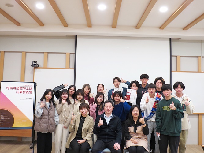 本校「跨領域國際學士班」(以下簡稱「國際班」)於111年秋季迎來首屆14名日本學生,在歷經了三個月的學習與輔導後,學生的華語口說能力與在地文化的感受能力都有了顯著的進步。基此,國際班王世和主任特與擔任授課的戴凱欣老師與楊雁婷老師共同籌劃「華語學習成果期末發表會」,邀請國際班學生分別以「在臺灣的旅遊故事」和「在臺灣的生活及文化體驗」為主題進行發表,並請「中級華語(一)」及「華語聽力與口說(一)」兩班修課的外國學生出席參與。