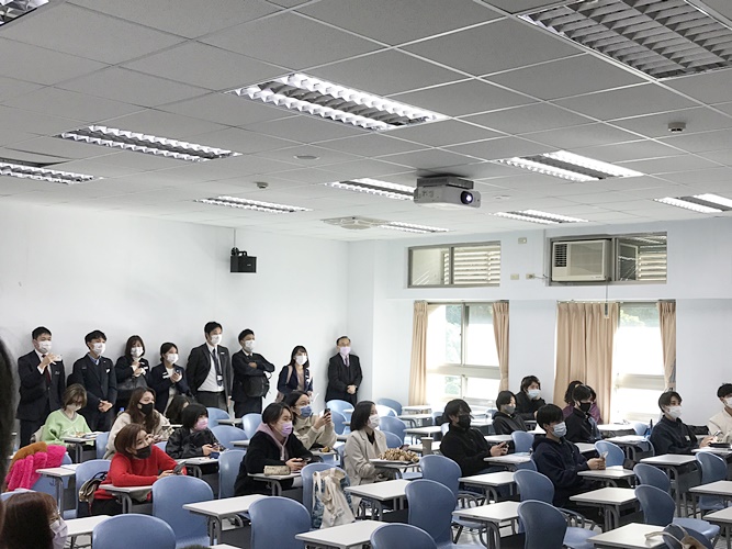 JTB台灣世帝喜旅行社為使日本學子們來到台灣進行最棒的深度修學旅遊,12月20日由營業團體課杜旻穎課長率領日本各分社代表、海商部團體部代表、東京台湾觀光協會代表,及NHK隨行採訪記者一行24人,至本校進行修學旅遊行程考察。