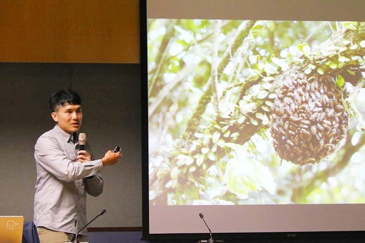 緊接著,雪羊老師深入介紹貫穿了北台灣的新北市、基隆市、台北市、宜蘭縣四個行政區的「淡蘭古道」,命名的來由是從現今此四行政區的舊名,「淡」水廳和噶瑪「蘭」廳取其中二字,如今已被指定為「國家級綠色步道」。另外,淡蘭古道更是保留了全台灣低海拔中最多的原生種蕨類、魚類,因交通不易、開發相較其他山區少,故能保留相對原生的環境,物種也就有足夠安全的庇護所。而淡蘭古道分為北路官道、中路民道和南路茶道,隨著雪羊老師的口述且配合著投影出的圖像,同學們瀏覽沿路的景致,野放的水牛群、具保護色的青竹絲、道旁的土地公廟宇,彷彿同學們也一步步走過了淡蘭古道,並留下深刻的記憶。