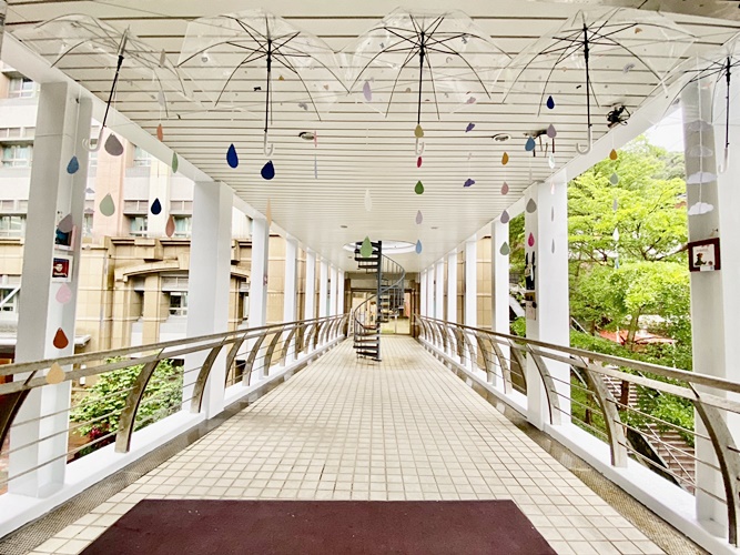 搭配展覽,圖書館也推出「隨心所悅」活動,看完展覽後,可在主題展版旁隨機抽取繪本卡片,閱讀並填寫線上問卷,出示完成畫面即可領取一份幸運小禮物。活動也呼應SDGs目標,全程以「可重複使用」的材料佈置,達到永續的成果。更值得一提的是,因疫情而關閉兩年之久,連接第二教研大樓及圖書館的空橋已重新開放,更精心布置許多「小彩蛋」讓觀展者尋找,期待師生一同共襄盛舉!