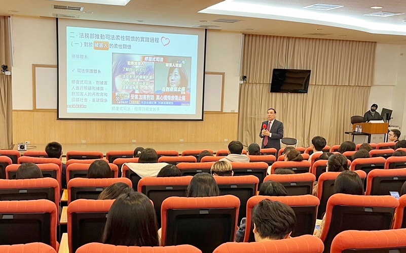本校通識教育中心廣達大師講座「當代精英的責任與關懷」課程,於112年4月24日在外雙溪校區普仁堂邀請本校傑出校友、現任法務部部長蔡清祥分享「司法的柔性關懷:社會公義的另一種實踐」,從不同的角度切入,扭轉社會對司法的鐵腕印象。