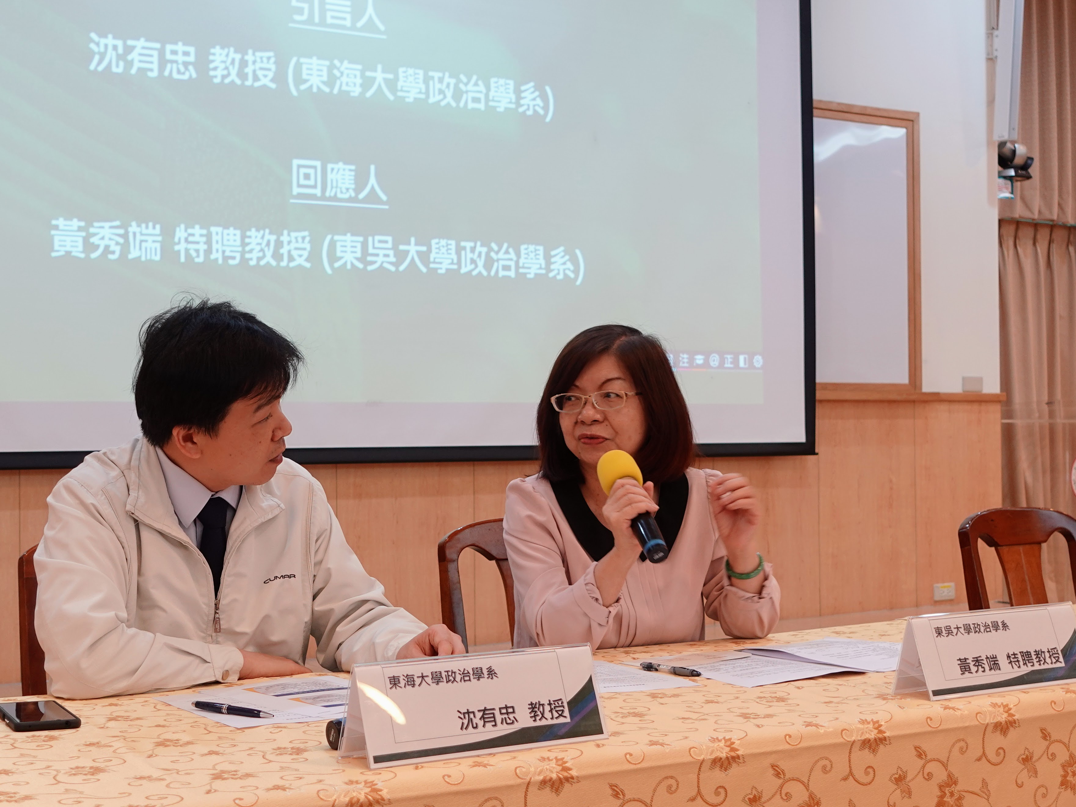 本次座談會,沈有忠教授以「俄烏戰爭衝擊下的台海安全」為題,探討俄烏戰爭與兩岸關係。他提出俄烏戰爭是一場「區域的全球戰爭」,戰火雖發生在烏克蘭境內,卻對全球能源供給、經濟產業鏈、金融、區域安全整合等產生巨大的影響。以俄烏戰爭對於全球的影響為借鏡,台灣的民主價值、經濟地位、戰略位置等條件較烏克蘭對世界各國更有影響力,這使得中國必須審慎評估對台動武的成本。而黃秀端特聘教授也針對這點回應,表示台灣有許多重要經濟產業,例如:晶片、螺絲之技術與生產,是世界不可或缺的供應源頭,若中國以武力犯台,需面對各國經濟制裁的壓力,因此,台灣不可妄自菲薄,誤以為本身沒有自我防衛的能力。