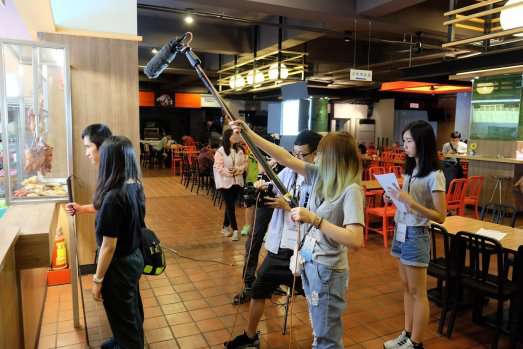 討論完劇本後,全部的同學就揹著器材在校園內各處開始拍攝,電梯前、操場上、教室裡、大階梯上,處處可見同學們認真拍攝的身影「再拍一次好不好?」「抱歉啦,我笑場了!」「收音入鏡了啦,哈哈哈重拍!」拍攝過程中,大家都賣力的演戲、攝影、導戲、收音,對身旁都是新手的夥伴有的是鼓勵,而不是在大太陽底下常見的煩躁。