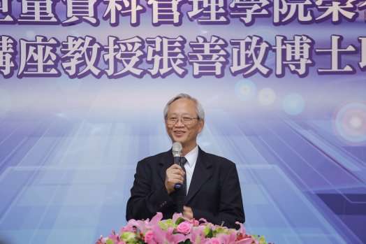 潘維大校長致詞表示,學校於104學年度全國首創巨量資料管理學院,為展現在巨量資料分析與應用方面之學術發展及人才培育的企圖心,巨資學院已延聘五位講座教授:台灣金融研訓院許嘉棟榮譽顧問,資策會大數據所林蔚君所長、中台雲周延鵬執行長、國家政策研究基金會朱雲鵬教授及實踐家教育集團林偉賢董事長,藉以協助東吳大學在大數據航道上,能於不同領域,如資訊安全、金融科技、智慧城市、專利、國際經濟與互聯網創新商業模式等,有更寬廣且深入的發展,此次能再聘請前行政院張善政院長擔任講座教授兼榮譽院長,可謂如虎添翼。張善政博士在擔任行政院副院長期間,特別重視大數據與開放資料(open data)的應用,迄今政府開放資料運用,均有不錯的成果。